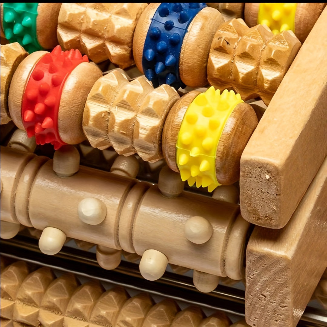 Key Features: This is a large dual - foot massager. It has 10 wooden bamboo rollers that can deeply penetrate the foot muscles and tissues. It can massage both feet simultaneously, refresh tired, sore, and achy feet, promote better blood flow, and is suitable for feet of all sizes. It's very portable and can be used while working at a desk, watching TV, or relaxing. The size is 10.75 inches by 8 inches.